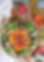 Ingredienti per 2 persone: 3 cachi; 1 melagrana; 50 g di noci tritate; 150 g di feta; insalata mista (ad esempio rucola, radicchio, spinacini),due cucchiai di olio extravergine di oliva; due cucchiai di aceto balsamico; 1/2 cucchiaino di miele; finocchietto ; sale; pepe