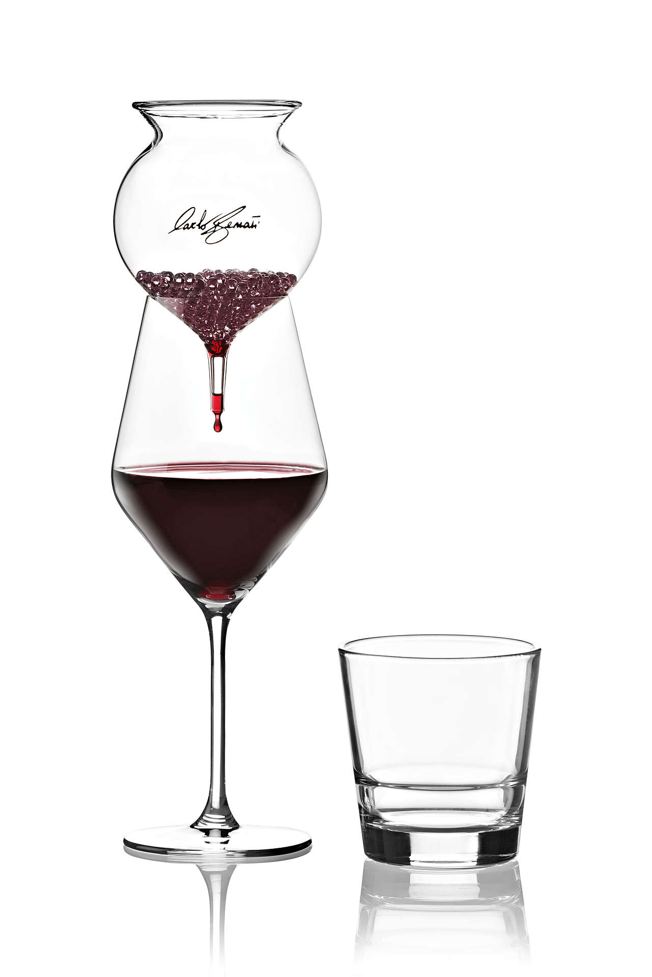 Custode di un brevetto internazionale, questo articolo in vetro soffiato, risolve il problema di pronta beva, schiudendo il vino e non solo: si sposa perfettamente anche per il mondo dei superalcolici (spirits) e della mixology.